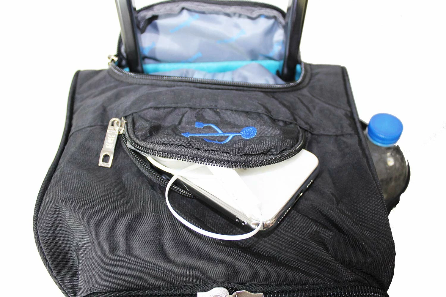 - Laptop sleeve pocket approx size:7″x 8.5″. __ USB charging port