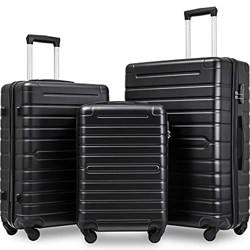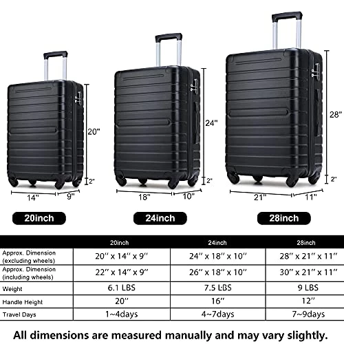 - 【3 PIECE LUGGAGE SET FOR TRIP】With different sizes of 20″(22″ x 14″ x 9″-Capacity 33 LBS), 24″(26″ x 18″ x 10″-Capacity 44 LBS), 28″(30″ x 21″ x 11″-Capacity 55 LBS), this 3 piece expandable luggage set offers a packing option for every occasion and is also ideal for sharing on a family holiday.
