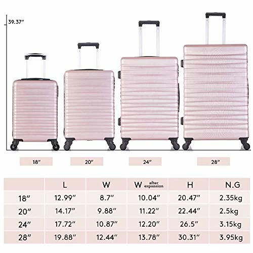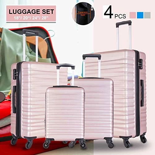 - ✈【IDEAL LUGGAGE SET】- 4 Pcs luggage set to accommodate all your traveling needs:18inch, 20inch, 24inch, 28inch. A proper internal structure allows you to pack as many travel accessories as possible. Features packing straps to hold your clothes in place, a zipped pocket for anything you want to keep separate, and mesh pockets for better organize.
