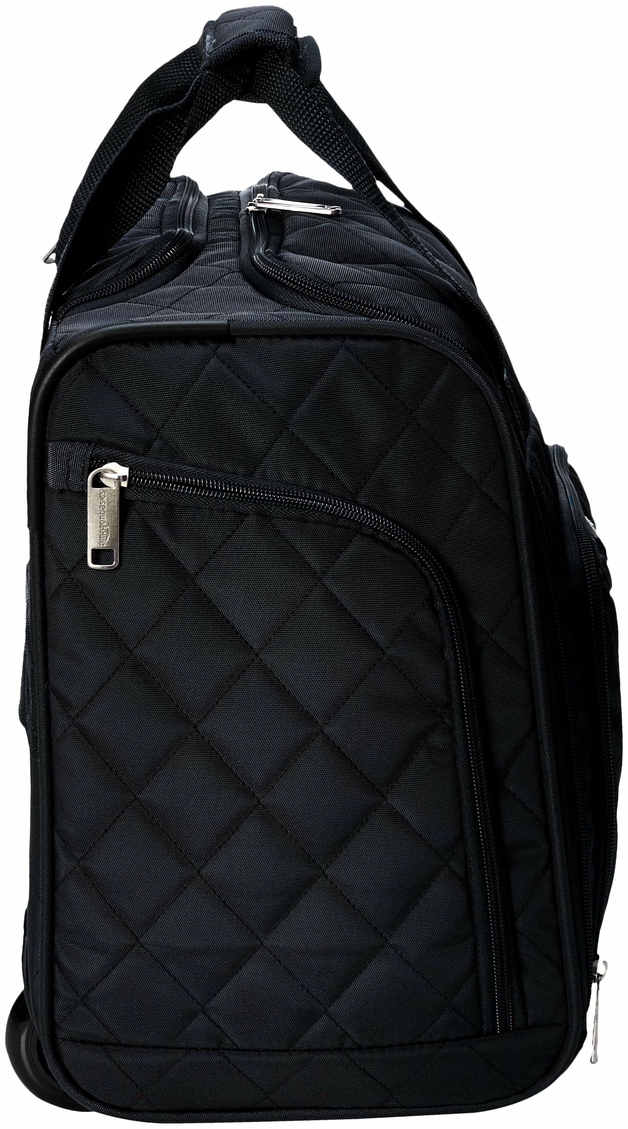 - Rolling luggage for savvy travelers; fits in most airline overhead compartments and under the seat in front of you