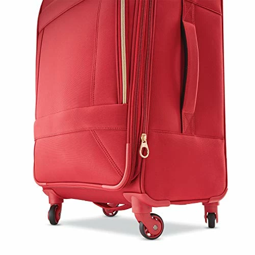 Details: Gorgeous gold components including a new American Tourister stacked logo plate, zipper pulls & beveled push button locking handle. All cases expand 1. 5” & carry on spinner has a new bail style top carry handle. Single airflow spinner wheels for a smooth ride.