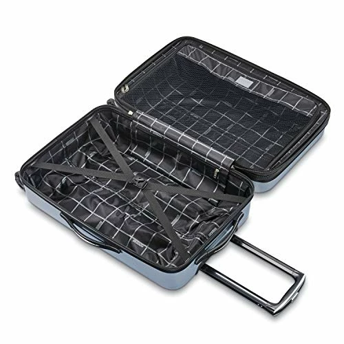 Details: Transport your travel essentials effortlessly and stylishly. This extremely lightweight and durable spinner features ABS scratch resistant texture with fashionable squared lines. It features single spinner wheels for a smooth ride and book opening case with mesh divider. The fully-lined interior has cross-straps and book opening case with mesh divider. TSA compliant combination lock for security and peace of mind.