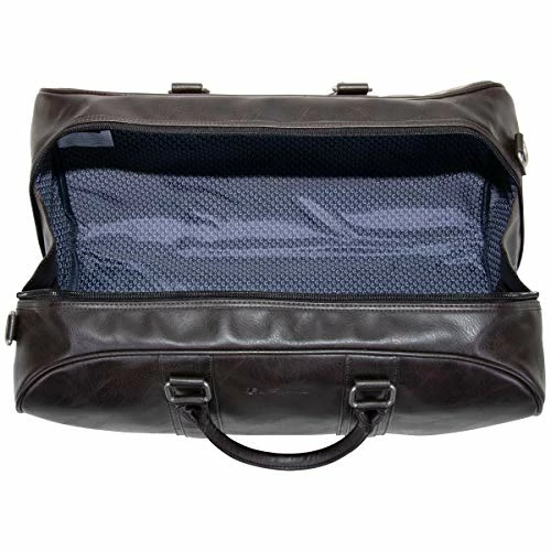 Details: Fashionable, yet functional, this 20” vegan leather top zip weekender travel duffel bag is the perfect carry-on bag to accompany you on your next trip. Its durable, distressed faux leather exterior and tear-resistant, fully lined, interior make it the perfect bag for trips of any length. The roomy main compartment features a zipper pocket and dual open slip pockets, leaving plenty of room to store any other needed belongings or accessories. Sturdy bottom feet protect the bag against dirt and scratches, and premium self-repairing zippers designed for long-lasting use provide peace of mind that your belongings remain safely inside. Perfect for short and long trips alike, the duffel’s lightweight construction helps you adhere to airline weight restrictions to avoid unneeded airport fees. Duffel features comfortable dual tube style handles that have a 5-inch handle drop. Duffel bag also comes with a removable and adjustable padded shoulder strap that measures 52 inches when fully extended and make for comfortable carrying. ★ Overall Size: 20” L x 11” H x 9” D. ★ Product Weight: 3.3 lbs. ★ Backed by a manufacturer’s 10-year limited guarantee against defects and craftsmanship. ★ This premium duffel bag is perfect for the fashion savvy individual.