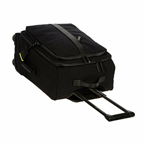 - Rubber comfort grip pull handle with matte leather top & side handle