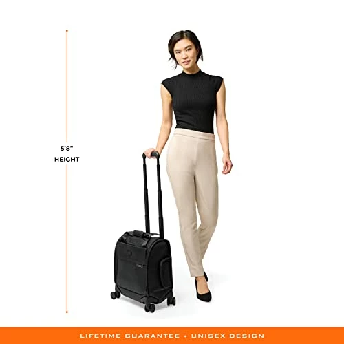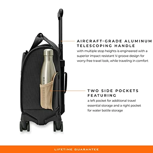 Details: The Briggs & Riley Carry-on Cabin Spinner Luggage (16″ x 14″ x 9.5″) meets carry-on regulations for most U.S. domestic and international airlines. It’s roomy, gusseted main compartment makes packing easy, and fits under most airline seats and overhead compartments. Comfortable webbing handles with premium magnetic leather wrap elevates your traveling experience. The proprietary shock absorbing spinner wheels offer 360 maneuverability and smooth quiet gliding for effortless navigation. Designed with self-repairing YKK RC zippers call for smooth zipper action with lockable zipper pulls. Bag can be cleaned with a soft, damp cloth or an adhesive lint brush roller. If your bag is ever broken or damaged, we’ll repair it free of charge, no proof of purchase needed, no questions asked.