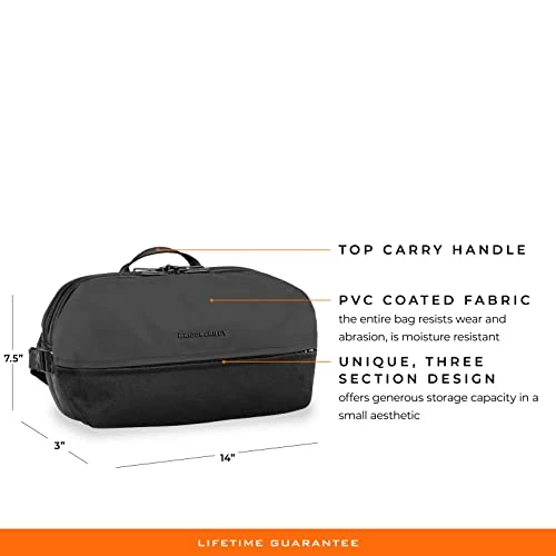 Details: INTERIOR FEATURES Large zip-around front section has room for a files, books or a change of clothes, two bloused pockets and a separate zip pocket to secure small personal items, top lid features a fold-away document slip and three elastic holders for pens and digital devices Large gusseted zip-around back section with padded compartments for both your 15″ laptop and 11″ tablet EXTERIOR FEATURES PVC coated body fabric means that the entire bag resists wear, water and abrasion and is ready to go wherever and whenever you are Designed with security in mind in both backpack and brief modes, the most important compartments on the bag are close to your body. The outside pockets feature a turned edge profile, creating hidden zippers and adding style to your security Top and side handles provide multiple and convenient carrying options Self-repairing YKK zippers; sleek, ergonomic zipper pulls that can be locked together lock for added security (lock not included) Deep SpeedThru pocket for quick storage of items at security checkpoints; orange lining alerts you if the pocket is open; three card pockets secure business, credit and ID cards Zippered RFID blocking pocket on back of bag protects personal information from digital pickpockets Hide-away backpack straps can be easily and discreetly stored in in back compartment when bag is used as a brief Adjustable padded backpack straps for maximum shoulder comfort; curved “turned edge” design maximizes shoulder and back ergonomics Cushioned air mesh on the back panel and backpack straps provide a breathable fit and exceptional comfort when carrying a heavier load Slip-through back panel allows bag to slide over the Briggs & Riley Outsider handle for seamless transportation of two bags as one