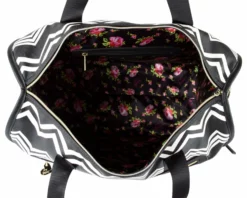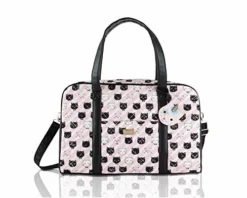 Betsey Johnson Luv CruzIn Cotton Quilted Carry On Weekender Travel Duffel Bag – Black/Blush Cat