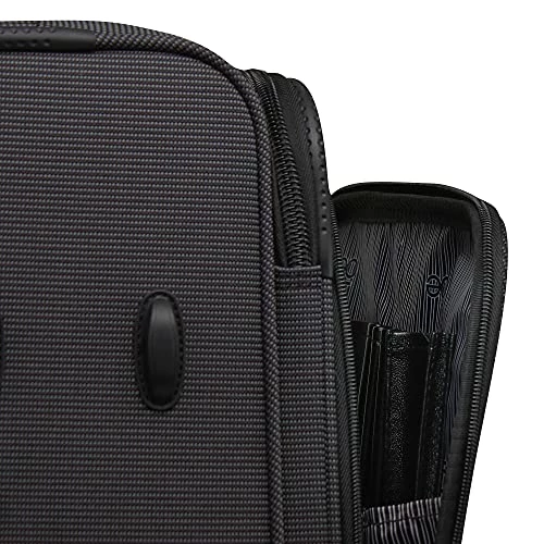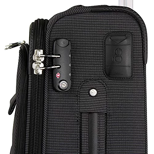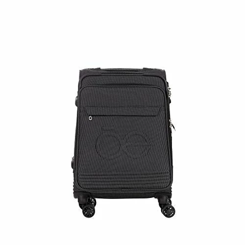 Details: Carry-On 20 inch luggage made from hard-wearing polyester Fabric. Double 360º-Spinner Silent Wheels (4 double wheels). Debossed front detail. Front pocket.