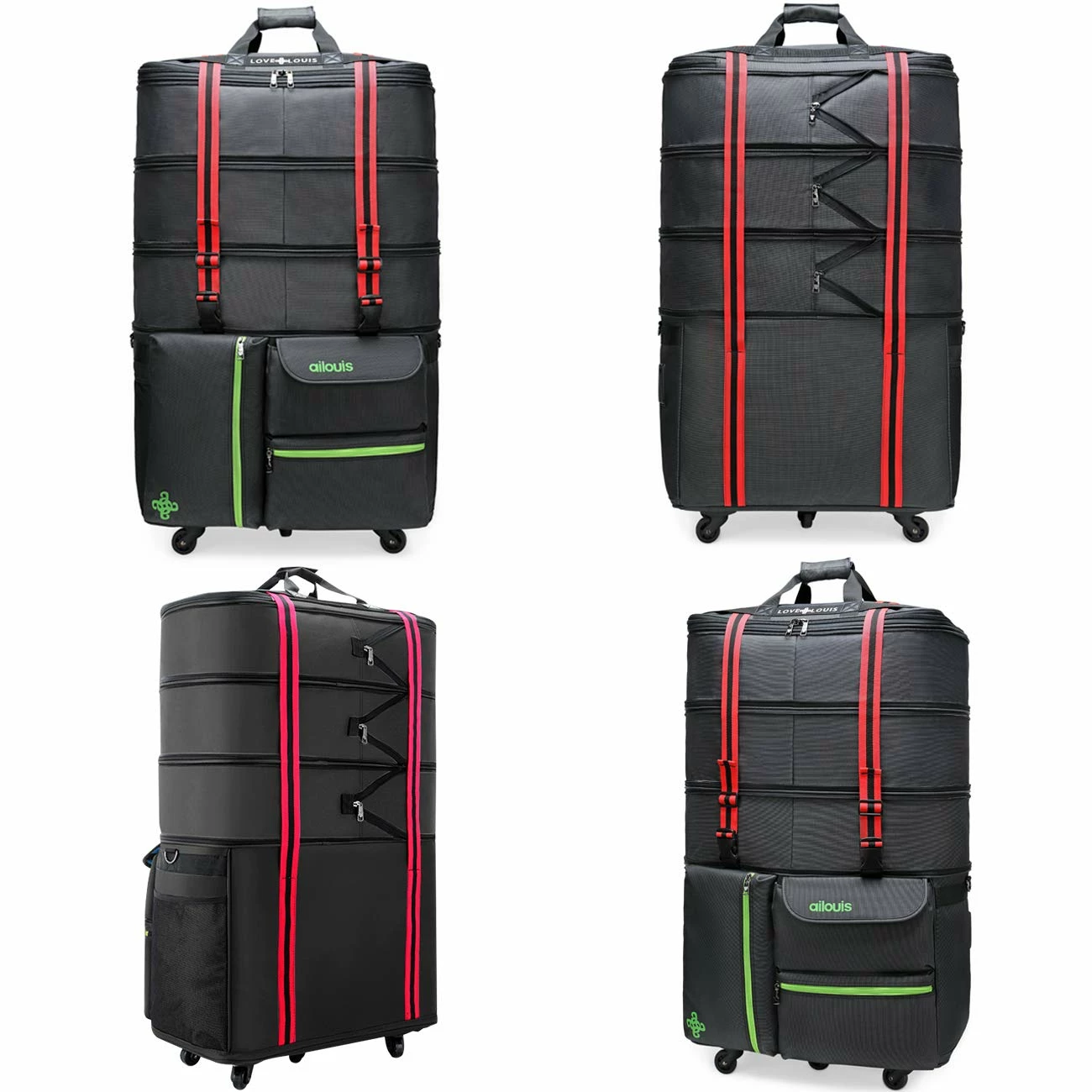 - Soft waterproof nylon fabric, wear-resistant, High-quality rigorously tested accessories, stereoscopic, 5 hard wearing wheels, full 360° for smooth maneuverability. Excellent design, ensures effortless smooth movement even when the bag is full loade