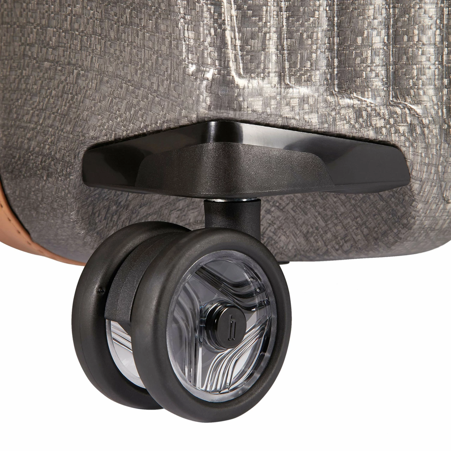 Details: Lightweight, scratch and impact-resistant, metalized Curv material Exceptionally resilient, dual tube aluminum pull handle with leather grip.Premium leather carry handles Smooth rolling double wheels with translucent polycarbonate core Recessed TSA lock Spacious packing compartments Mesh divided, zippered compartment Zippered accessory pocket Elastic cross strapsWeight: 8.4 lbs.Body Dimensions: 31.9″ x 20.7″ x 13.0″