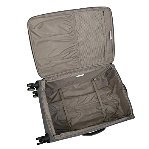 Details: Get ready for your next holiday with the Filament collection by IT Luggage. Our specially developed base gives the suitcase a strong structure and added stability alongside a lightweight trolley system which helps to reduce weight, travelling has never been made easier. The 8-wheel spinner system gives superior mobility so you can navigate your journey seamlessly. If you need to bring back a holiday souvenir the semi expander will give you that extra bit of space to get it home. The spacious front pocket means that any travel essentials are easily accessible while the interior mesh pocket means you can keep your items organized. Make travel exciting with the Filament collection by IT Luggage.