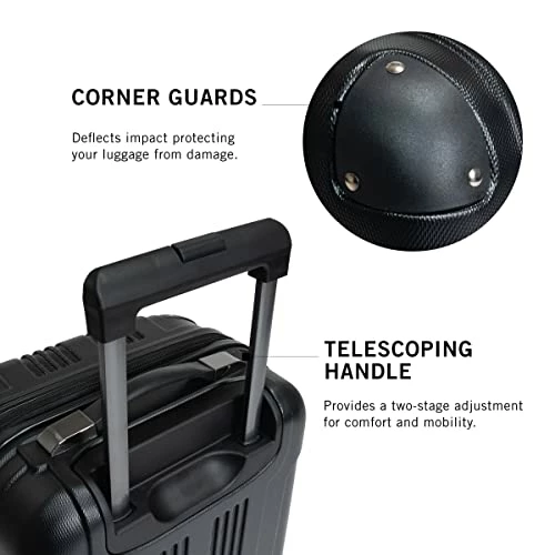 - Durable, lightweight hardside ABS exteriors with corner guard reinforcements and tear-resistant, fully lined interiors