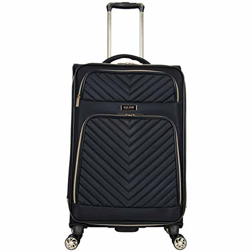 Details: Finally, travel made trendy with the stylish polyester-twill chevron luggage from Kenneth Cole Reaction’s Chelsea luggage collection. Complete with a fully lined, tear-resistant interior, this luggage also expands an additional 2.0 inches, ensuring that you have plenty of space for all your needed belongings. Its lightweight construction helps you meet airline weight restrictions to avoid unnecessary airport fees, while its 8-wheel spinners provide effortless 360-degree navigation allowing you to glide quickly through the airport. The main compartment interior features a hanging side zipper pocket and garment restraints to hold belongings in place. The under-the-lid section includes a mesh zipper pocket and a transparent, clear PEVA gusseted pocket for toiletries. The front exterior also features a small zipper pocket for easily accessible items and a large gusseted zipper pocket for additional storage organization. Padded top and side handles allow for easy maneuvering, and a bottom grab handle allows for easier lifting. Additionally, a retractable trolley handle extends to be 41 inches tall with a locking push button mechanism. Fashionable and functional, Chelsea luggage also boasts fashion-forward gold hardware with premium self-repairing coil zippers designed for long-lasting use. Carry-on size meets most U.S. based airline carry-on size requirements and fits into most airline overhead bin compartments. Backed by a manufacturer 10-year limited warranty. ★ Overall Dimensions: 27.0” H x 15.0” L x 10.0”-11.5” D. ★ Packing Dimensions: 24.0” H x 14.5” L x 9.5”-11.0” D. ★ Weight: 8.4 lbs. ★