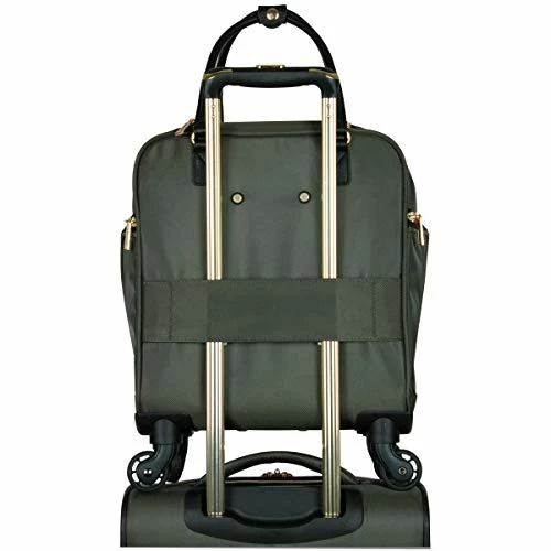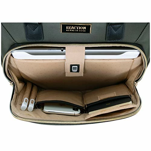 Details: Lighten your load by packing your essentials in this polyester twill chevron-quilted 4-wheel spinner underseater from designer Kenneth Cole, great for a weekend getaway or your daily commute. The bag’s lightweight construction helps you meet airline weight restrictions, avoiding unnecessary airport fees, while its 4-wheel spinners allow for effortless 360° navigation, getting you where you’re going faster. With its durable, polyester twill, chevron-quilted exterior and tear-resistant, fully lined interior take comfort in knowing that your belongings are stored safely inside. The bag’s front compartment interior includes a padded tablet pocket and organizer pockets to store smaller items, while the side exterior features two zippered pockets to hold a water bottle or other smaller items. The main compartment consists of a zippered pocket, two shoe pockets, and garment restraints and is just the right size for a short business trip or a weekend away. The bag features a retractable trolley handle extends to be 41” tall with a locking push-button mechanism, as well as a rear exterior trolley tunnel to fit over most luggage upright handles, for hands-free carrying. Additional top handles allow for comfortable and easy lifting. Meets most U. S. based airline carry-on size requirements and fits into most airline overhead bin compartments. ★ Overall Dimensions: 17. 0” H x 13. 0” L x 9. 0” D (includes wheels). ★ Weight: 5. 6 lbs. ★ Backed by a manufacturer 10-year limited . ★