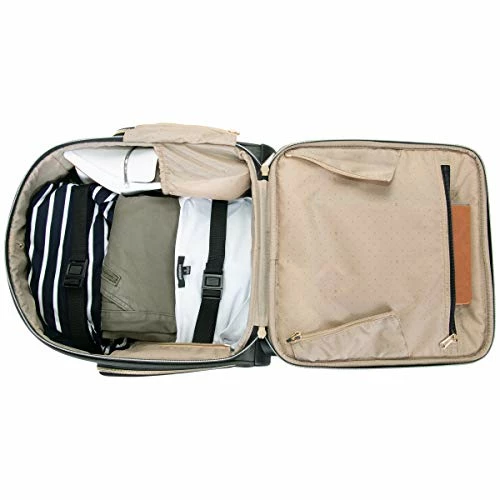 - Features tablet pocket and a spacious main compartment with shoe pockets and garment restraint straps.