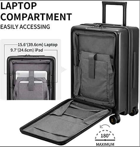 - CONVENIENT & USER-FRIENDLY FRONT LAPTOP POCKET: The 20-inch carry-on features a unique front laptop compartment with an integrated padded sleeve for 15.6 inch laptops for easy access.