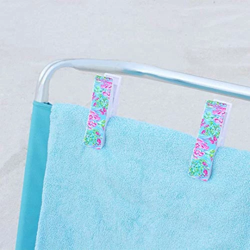 - Includes 2 clips that attach onto beach chairs to help combat the beach breeze and keep your towel in place. Plus, they double as super cute snack/chip clips!