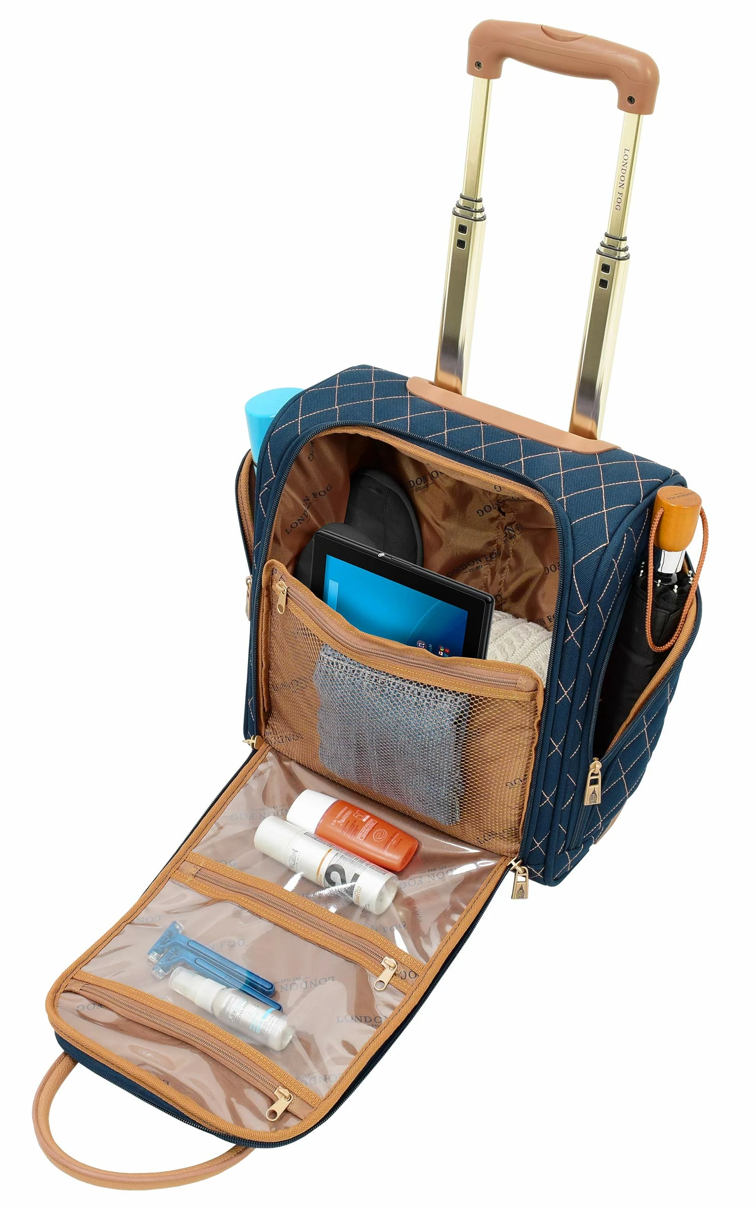 Details: The London Fog queensbury 15″ Vertical under the seat bag is designed to comfortably fit underneath most standard airline seats.