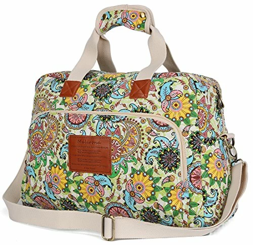 - Material:Colourfast canvas with bronze hardware,cotton lining.This overnight bag featured with original floral pattern shows your young girl heart