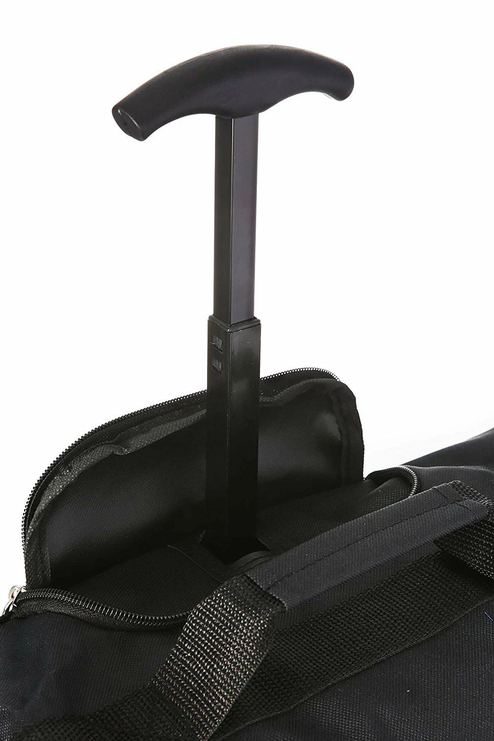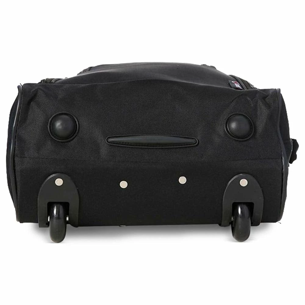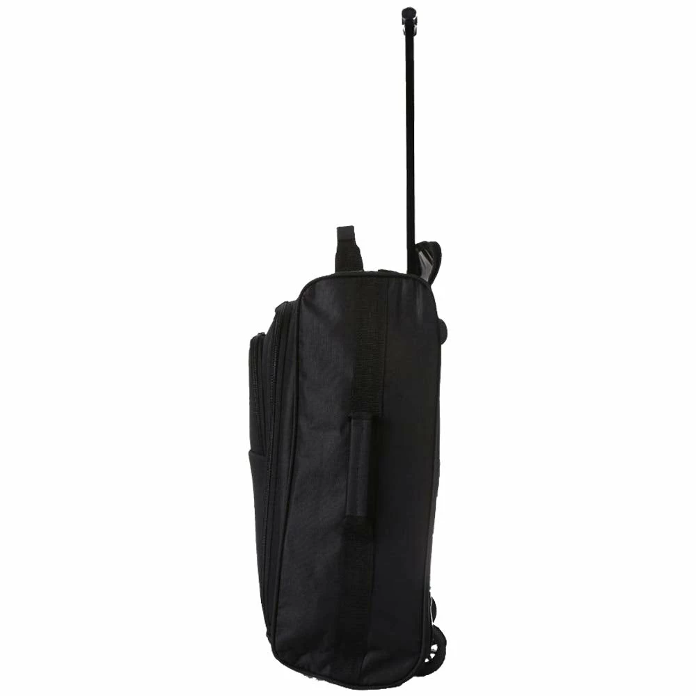 The bag features two front facing pockets for easy access, and has two zips and a padlock for added security. The telescopic easy grab handle can be retracted fully and hidden within a zipped compartment. The bags also feature a new improvement on the bottom of the bag where we have improved the rubber balls on the bottom of the bag, added a PVC rubber strip and also a rubber trim to the outside edges of the bag to prevent wearing.