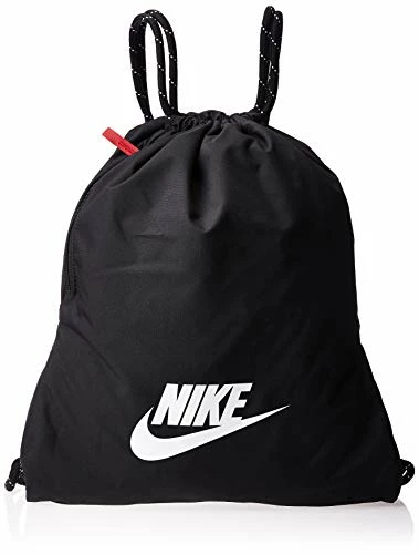 Details: The Nike heritage gymsack backpack is ideal for transporting sportswear. To close the bag you only need to draw The cords. The cords can also be used as shoulder straps. There is a special zipped compartment on the side and across the entire width. This lightweight backpack features a large Nike logo.
