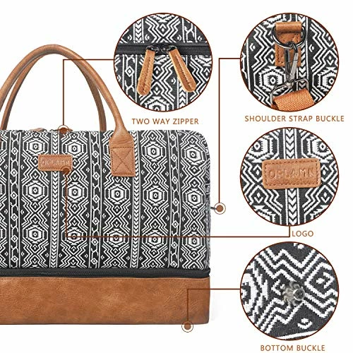 Oflamn Weekender Bag For Women Carry-On Luggage Bohemian style Duffle Bag Overnight Bags 3-4 Day’ Travel Bags With Separated Shoes Compartment