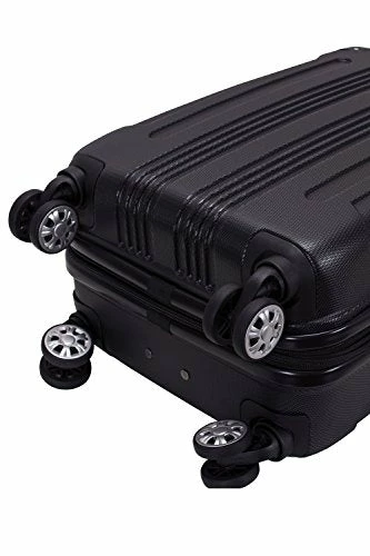 Details: This carry on is made of ABS. This material is extremely lightweight, durable, and protects the contents of your luggage. Four multi directional spinner wheels rotate 360 degrees for easy maneuverability. This luggage allows you to pack more while avoiding the excess weight surcharges imposed by most airlines. Multi-directional spinner wheels for easy maneuverability. Modern internal chrome telescoping handle with push button handle. Interior mesh and zip pocket and elastic pocket 5 year 22″X13. 5″x10″ (with wheels) weighs 7. 5 lbs.
