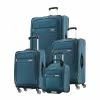 - Interior of Wheeled Garment bag includes pockets for shoes, extender panel for longer garments, mesh pockets. Spinners include self-mending coil zippers for flawless closure. Cases expand for added packing capacity. and tie down straps to secure loose items.