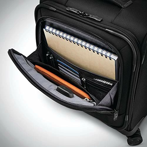 Details: Be amazed by what you can fit under the seat in front of you. This lightweight, rugged bag is sized to fit under most airline seats, so it counts as a personal item. Keep all of your business essentials accessible with plenty of organizational pockets, pack a change of clothes or two, and keep your devices charged with an integrated USB port. Made from 100% Tricore Nylon with SamGuard Treatment: Rugged, lightweight, exceptionally resistant to abrasion, puncture, and tears, and water resistant USB Port: A built-in port lets you power up your phone, tablet or any other USB accessory on the go (battery not included) Premium custom engineered dual spinner wheels: Provide effortless glide and maneuverability and are recessed to maximize packing capacity RightHeight Pull Handle – With 8+ height adjustments for individual customization. Also textured and ergonomically designed for easy handling and comfortable grip. Integrated Privacy ID Tag: Retracts into bag to protect your personal information while traveling Comfort Ergo Zippers: Engineered to be responsive to a light grasp for a smoother, easier slide Exterior pockets for organization Laptop Sleeve/Tablet Sleeve: A removable dual laptop and tablet sleeve fits up to a 15.6” laptop Business organization pockets Underseat Storage: Fits under the seat or in the overhead, and helps you beat carry-on fees. It’s small enough to count as your personal item. Qualifies as a carry-on personal item for most major airlines Carry-On size and weight allowances vary by airlines. If the bag is overstuffed, it may not be accepted by the airlines. Weight: 7.25 lbs. Body Dimensions: 16.0″ x 13.5″ x 7.25″ Overall Dimensions: 17.75″ x 14.0″ x 8.0″