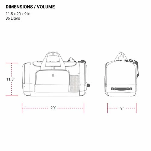 Details: Engineered for versatility and velocity, the SWISSGEAR 9000 20” Duffel Bag is a necessity. Made from 100% polyester, its rugged construct features a spacious main compartment, two large zip pockets, and a front pocket. Stuff your workout clothes, travel gear, and toiletries inside it and your canteen in the mesh water bottle pocket. A front organizer zip pocket is ideal for keys, smartphone, pens, and pencils while a bungee-cord system can cinch an extra pair of shoes and a light jacket.