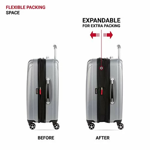 Details: Designed with durability and lightweight mobility in mind, SWISSGEAR 7585 hardside expandable luggage comes equipped with molded lift handles, a locking aluminum retractable handle, and eight 360-degree wheels allows for ultra-smooth mobility. The split-case interior naturally provides superior organization with its two-compartment design. Other features include a zippered divider panel, tie-down straps to help prevent shifting of clothes, a large zippered flat pocket, and a zippered wet bag.