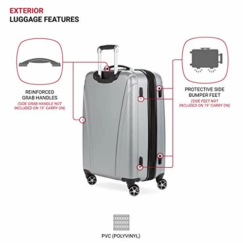 - DURABLE LIFT HANDLE: Durable molded top and side handle (carry-on features top handle only) makes for easy lifting and carrying of luggage.