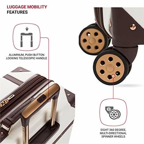 - 360-DEGREE SPINNER MANEUVERABILITY: Constructed with 8 premium spinner wheels and a locking retractable handle, take advantage of its easy pushing and pulling maneuverability to seamlessly get through a crowded airport or down narrow airplane isles.