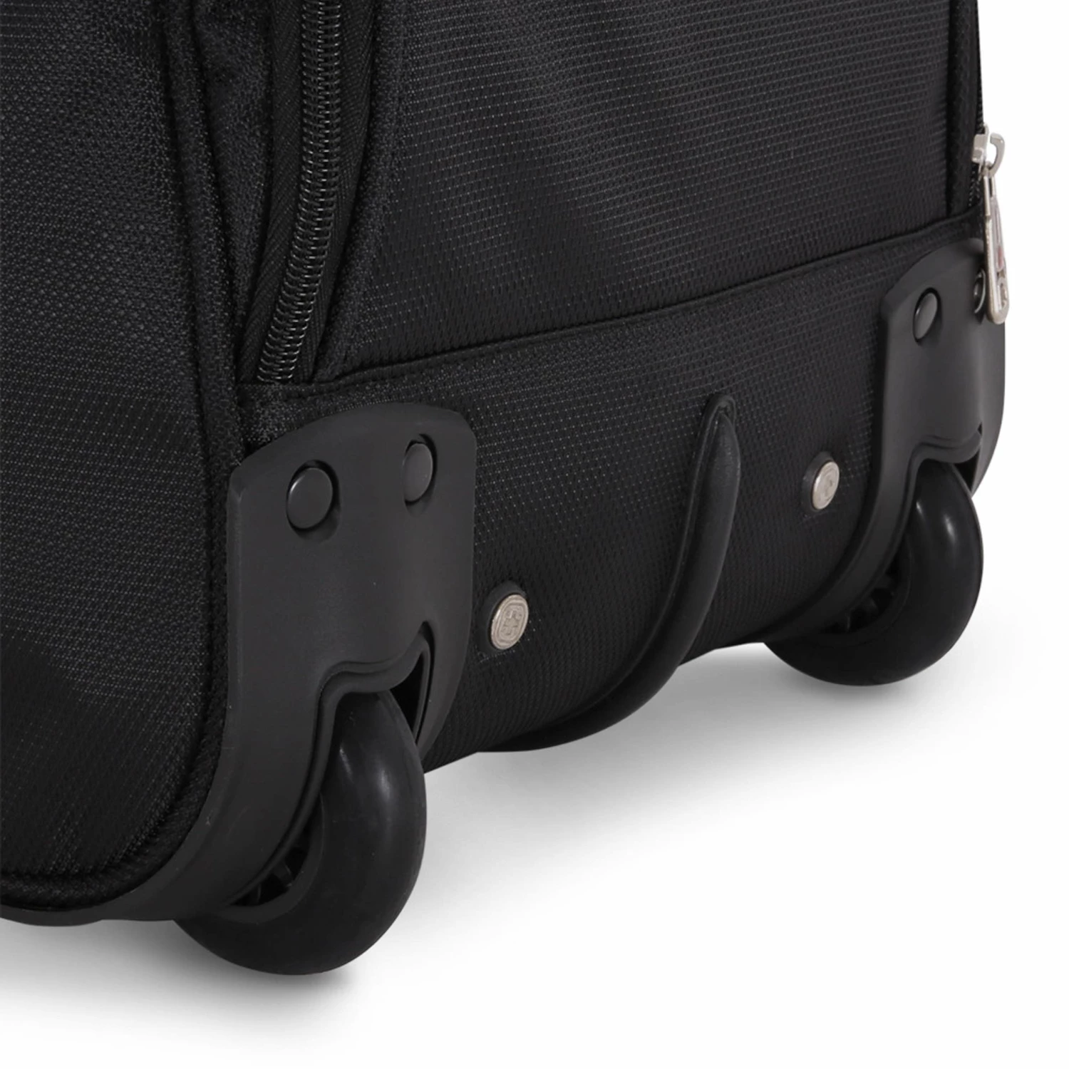 Details: If you are a regular traveler, then do yourself a favor with this SWISSGEAR Zurich 22.5″ Wheeled Duffel Bag. Constructed of durable polyester, the softshell body opens in various zipped pockets and roomy inner compartments. A top U-shaped flap peels to the side to allow for easy packing. Do not worry if you overstuff the duffel, the rolling system will take the weight off your hands. Let this duffel work its quiet and secure motion–all you need to think about is getting to your destination!