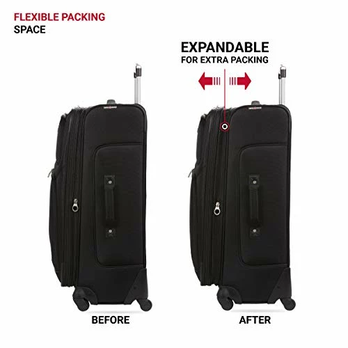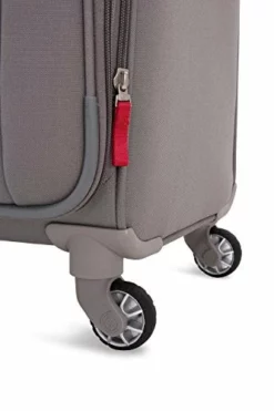 Details: The SWISSGEAR 6283 29″ Expandable Spinner Luggage features a locking push/pull handle system and four 360-degree spinner wheels for superior mobility. Made of durable, scuff-resistant polyester fabric, its interior is fully lined and features adjustable luggage tie-down straps, a removable zippered wet bag, a large mesh lid pocket, and a packing pocket for holding small items and accessories. Other features include two front panel pockets, a built-in ID tag, and padded top grab handle.