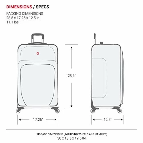 - DIMENSIONS: Packing Dimensions: 28.5” x 17.25” x 12.5”; Product Dimensions (includes wheels and handles): 30” x 18.5” x 12.5”; Weight: 11.1 lbs