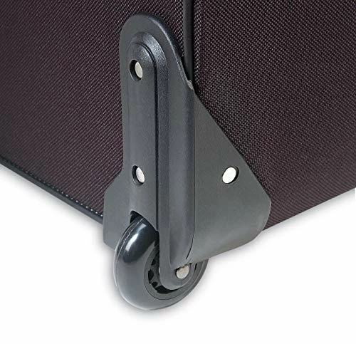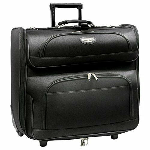 Details: The travel select Amsterdam business rolling garment bag is ideal for keeping your clothes crisp and clean while you are traveling. This garment bag is made of industrial quality hardware; 1200d two-tone polyester construction with an EVA reinforced front panel. It features an internal handle system, inline skate wheels, and an adjustable and detachable shoulder strap with a non-slip pad. It has a spacious main compartment with zippered mesh pockets and multiple outside gusseted pockets for easy packing. The convenient tie straps secure items while the fold-out design helps to reduce wrinkles in suits. Plus, the top carry handle is designed for easy lifting and center strap is built in for carrying extra bag. Size: 23″w x 22″h (44″ opened) x 7″d 9.3 Lbs.