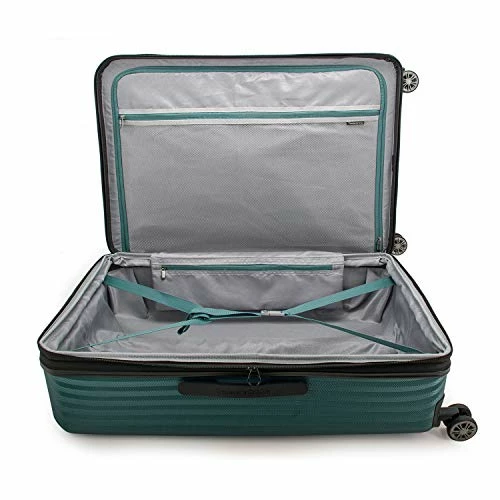 - 22″ Spinner features a built-in USB port and interior power bank compartment that provide quick connection to your portable electronic device for a quick charge.