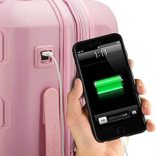 Details: This pagosa 2-piece luggage set by Traveler’s Choice includes a 26-inch expandable checked spinner luggage and a 22-inch carry-on expandable spinner luggage. It is made of textured polypropylene hard-shell that’s abrasion-, scratch-, and water-resistant. Spinner wheels provide 360° rolling maneuverability through crowds and airports. Expansion gusset provide up to 2-inch to make packing a breeze. The 22-inch carry-on spinner features a built-in USB port, type C port, and an interior power bank compartment that provide quick connection to your portable electronic device for a quick charge. Power bank compartment measures 9” W x 3. 5” L x 1” D. (Power bank not included). the telescopic handle is adjustable and has push button mechanism. Top and side rubber carry handles provide easy lifting and carrying. Large interior compartment features multiple zippered pockets. Self-mending #10 zippers provide great durability. 26-Inch expandable spinners overall Dimensions: 26”h x 17”w x 11”d + 2” expansion. 26-Inch spinner’s packing capacity: 23. 5”H x 16. 5”W x 10. 5”D (product weight: 8. 24 lbs. ). 22-Inch expandable spinners overall Dimensions: 22”h x 14. 25”W x 9. 25”D + 2” expansion. 22-Inch spinner’s packing capacity: 19. 5”H x 13. 75”W x 8. 7. 5”D (product weight: 6. 3 lbs. ).