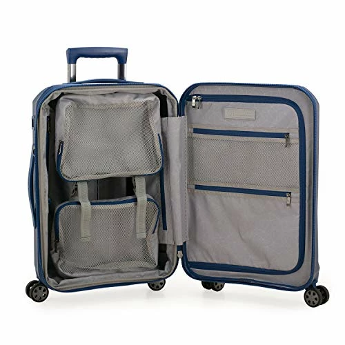 Details: Textured polypropylene hardshell that’s abrasion-, scratch-, and water-resistant. Spinner wheels provide 360° rolling maneuverability through crowds and airports. Expansion gusset provide up to 2″ to make packing a breeze. 22” Carry-On Spinner features a built-in USB port, Type C port, and an interior power bank compartment that provide quick connection to your portable electronic device for a quick charge. Power bank compartment dimensions: 9” W x 3. 5” L x 1” D. (Power bank not included) Multi-stage telescoping handle with push button mechanism. Top and side rubber carry handles provide easy lifting and carrying. Large interior compartment features multiple zippered pockets. Self-mending #10 zippers provide great durability. Interior compression straps keep clothes in place. 22” Expandable Spinner Overall Dimensions: 22”H x 14. 25”W x 9. 25”D + 2” Expansion Packing Capacity: 19. 5”H x 13. 75”W x 8. 7. 5”D Product Weight: 6. 3 lbs.