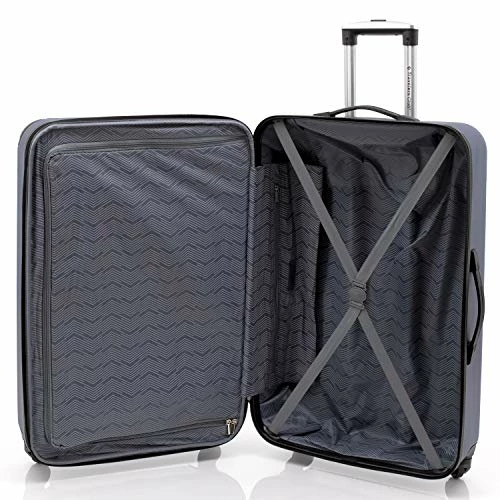 - 5 piece set includes 28″ Large check-in suitcase, 24″ Medium check-in suitcase, 20″ Carry on, 15″ Boarding tote, and 10″ Travel accessory kit toiletry bag