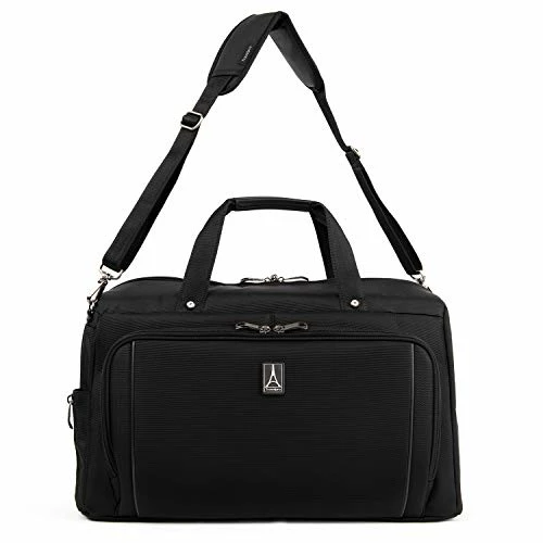 Details: We call it a duffel. You will call it your favorite weekender. The durable crew versapack weekender carry-on duffel bag with suiter is an unassuming workhorse with its clean lines, ample interior space, split-case construction and removable fold-out suiter that carries casual wear to a tuxedo without a wrinkle. Hit the road or the jetway with the perfect all-in-one bag for a short trip, or use This bag as a companion to other luggage. A Travelpro quick slip front pocket with magnetic closure is ideal for storing a cell phone or other essentials on the move. The padded tablet sleeve accommodates standard-size tablets, and an exterior side pocket is fitting for a water bottle or umbrella. Plus, the quick-access zippered front pocket Includes a key fob and organizational compartments to keep all essentials neatly stored wherever you roam. Carrying options include dual handles, a removable adjustable shoulder strap and a rear stacking strap that fits around the extension handle of a Rollaboard or spinner suitcase for secure stacking and hands-free mobility. Built and tested to meet the same superior quality and durability standards, crew versapack is the civilian version of the luggage flight crews use, Made from stain-and abrasion-resistant high-density ballistic nylon fabric with supra zipper heads, engineered to resist damage from daily use and abuse. Plus, this bag is further backed by a built for a lifetime limited warranty with our trusted companion promise.