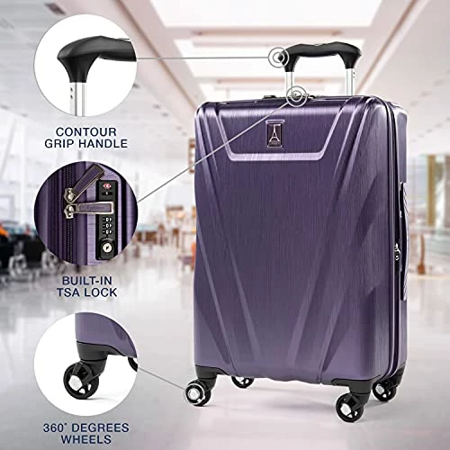 Details: Anywhere you go, you will be floating on air with this lightweight, ultra-durable, Maxlite®5 hardside spinner set that includes a 21” spinner sized to fit in the overhead compartment on most U.S. airlines and 25″ spinner built to withstand the rigors of check-in baggage. All feature a flexible polycarbonate shell that protects contents while resisting cracking or splitting, a textured surface to help reduce visible scratching or scuff marks and molded corner guards that serve as built-in bumpers on high-wear points. An integrated TSA-compliant lock keeps contents secure while allowing authorities to unlock and relock the suitcase without damage when needed for inspection. The split case construction and interior divider panel provide separate packing compartments, and elastic hold-down straps keep everything in its place. Mobility is easy on four 360° spinner wheels guided by the lightweight, height-adjustable PowerScope Lite handle with comfortable Contour Grip. Backed by Travelpro®Built For A Lifetime Limited Warranty with our Trusted Companion Promise. These hard-working spinners all feature a flexible polycarbonate shell that protects contents while resisting cracking or splitting, a textured surface to help reduce visible scratching or scuff marks and molded corner guards that serve as built-in bumpers on high-wear points. An integrated TSA-compliant lock keeps contents secure while allowing authorities to unlock and relock the suitcase without damage when needed for inspection. Great for any kind of trip, the split case construction and interior divider panel provide separate packing compartments, and elastic hold-down straps keep everything in its place. Mobility is easy on four 360° spinner wheels guided by the lightweight, height-adjustable PowerScope Lite handle with comfortable Contour Grip. Backed by Travelpro®Built For A Lifetime Limited Warranty with our Trusted Companion Promise.