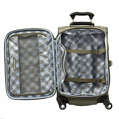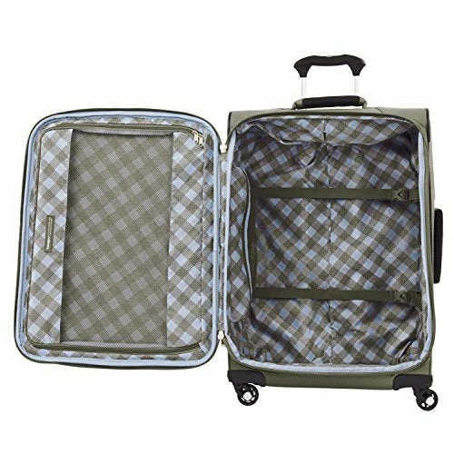 Details: Lighten up with the Maxlite 5 expandable spinner, The lighter-weight, ultra-durable, soft-sided spinner suitcase in a carry-on and checked baggage size designed to accommodate quick and longer trips. Enjoy an easy, comfortable glide thanks to the 2-position adjustable PowerScope lite handle with patented Contour grip and 4-wheel 360 degree rotating spinners, and stay organized with a convenient front pocket, full-length interior lid pocket, side accessory pocket and roomy interior with adjustable hold-down straps. A high-tensile-strength expandable zipper maximizes packing space for impressive flexibility. Backed by a new and expanded trusted traveler promise—for worry-free coverage from Travelpro. Case dimensions – 21 inches spinner – height 21inches, width – 14 inches, depth – 9 inches. 25 inches spinner – height – 25 inches, width 18 inches depth – 11 inches.
