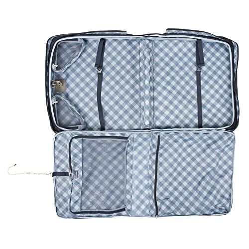 Details: Banish wrinkles with the Maxlite® 5 Bi-Fold Hanging Garment Bag. Polyester fabric with DuraGuard® coating resists water and stains to keep luggage looking great. Top carrying handle with detachable, adjustable crossbody strap. Exterior front zip pocket. Ergonomic, high-tensile-strength zipper pulls are tough yet easy on the hands. H20 Guard protects the interior lining from moisture. Interior zipper and mesh compartments. Lay-flat design keeps dresses, suits and other clothes wrinkle-free during travel. Interior elastic strap to keep garments in place. Unobtrusive rear strap fits around the extension handle of a Rollaboard® or spinner suitcase for secure stacking and hands-free mobility. Imported. WARNING California’s Proposition 65 Measurements: Width: 22 in Depth: 7 in Height: 22 in Weight: 3 lbs 14.4 oz