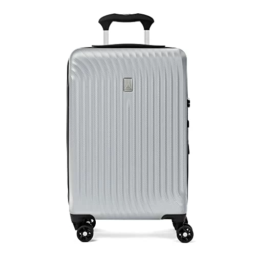 Details: Keep it light when carrying on with the durable, well-equipped, lightweight Maxlite® Air Carry-on Expandable Hard sided Luggage with Spinner Wheels. This metallic silver suitcase has 100% polycarbonate exterior that is engineered to flex if impacted to prevent splitting, cracking or punctures, and a stylish exterior finish reduces visible scratches or scuffs. Great for checking in too, this hardshell luggage has a built-in lock allows TSA authorities to safely unlock and relock the bag for inspection when needed, and a zippered expansion option maximizes packing capacity when needed. The interior lining of this luggage carry on is made from 100% post-consumer recycled plastic bottles to help reduce environmental waste and treated with H2O guard for moisture resistance. This hard shell suitcase has two zippered interior divider panels and built-in accessory pocket keeps everything you pack organized, separated, and secure. Glide with ease on eight smooth-gliding spinner wheels that rotate 360° led by a PowerScope Lite handle that locks in two positions (38” and 42.5”) for users of different heights. A patented Contour Grip with rubberized touch points makes maneuvering easy and comfortable. This spinner hardside suitcase is backed by our Built For a Lifetime Limited Warranty with Trusted Companion Promise that even covers damage caused by airlines or other common carriers for the first year of the lifetime warranty.