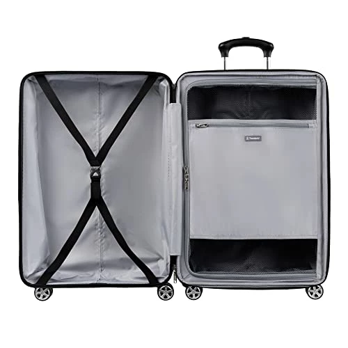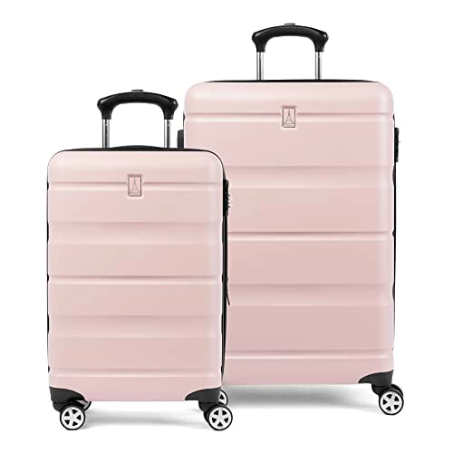 Details: Adaptable, durable and lightweight, this hard case suitcase set is like having two spinners that do the work of three! The Travelpro® Runway® 2-piece Hardside Carry-on & Convertible Medium-Large Checked Expandable Spinner Set includes a hardside carryon suitcase and a size-adjustable check-in hardside spinner that converts from a medium- to a large-size check-in suitcase when fully expanded. Created to serve separate functions, both of these lightweight yet durable bags are constructed with a blend of PC/ABS for lasting resilience and finished with a textured surface that minimizes the appearance of scuffs or scratches. This 2 piece set offers lined interiors with an interior divider panel, accessory pocket, and adjustable hold down straps to keep packed contents organized and in place. Smooth-gliding, 8-wheel spinners rotate 360° to provide superior maneuverability led by height-adjustable handles with patented ProGrip™ design for hand comfort. Size and expansion is where these bags differ most. The carryon luggage with spinner wheels has been sizer bin tested to fit in the overhead bins of most major domestic airlines and offers a 2” expansion option that maximizes packing capacity. The Convertible Medium-Large Check in luggage is a medium-sized bag that features a unique 3” expansion option that increases the bag’s capacity and size to a large check-in spinner (62 linear inches). No need to buy a medium and a large expandable suitcase – or even decide which to bring. Whether you over pack before departure or over shop at your destination, you will never have to worry about running out of space with this 2 piece hardshell luggage set!