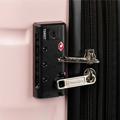 - Hard case luggage set with built-in lock allows TSA authorities safe access to unlock and relock the bag for inspection (default code set at 0-0-0). Both the carry on and checked suitcase have an interior divider panel with accessory pocket and adjustable hold down straps keep contents organized and in place.