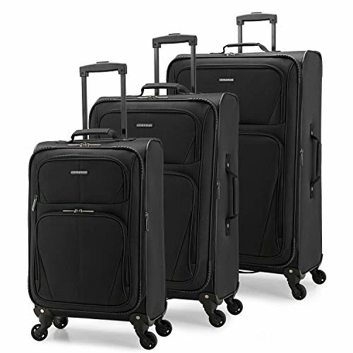 Details: Travel in style with your essentials packed inside this Aviron Bay luggage collection from U. S. Traveler. U. S. Traveler’s Aviron Bay luggage collection is crafted from durable twill polyester. Each case is detailed with four multi-directional spinner wheels, a telescoping handle for easy mobility, and top and side grab handles that make it easy to lift. The interior includes tie-down straps to hold garments in place and a zippered mesh pocket underneath the lid. The added expansion option also helps with those extra purchases made while traveling! Made from durable twill polyester fabric. A push-button multi-stage handle adjusts to different heights. A large interior zippered mesh pocket for easy organization. Features four 360-degree spinner wheels for easy mobility. Includes a 2-inch expansion gusset for extra packing space. All pieces roll upright so there is no weight on your arm. Includes a full interior lining with compression straps to keep items in place. Top, bottom and side carrying handles for easy handling. The exterior boasts two large exterior pockets for last minute items. Exterior Dimensions: 31” Spinner: 31”H x 18”W x 11”D + 2” Exp. (8. 57 lbs. ) 27” Spinner: 27”H x 16”W x 10”D + 1. 5” Exp. (7. 45 lbs. ) 23” Spinner: 22. 5”H x 14”W x 8”D + 1. 5” Exp. (6. 5 lbs. ) Interior Dimensions: 31” Spinner: 28”H x 18”W x 11”D + 2” Exp. 27” Spinner: 24”H x 16”W x 10”D + 1. 5” Exp. 23” Spinner: 20”H x 14”W x 8”D + 1. 5” Exp.