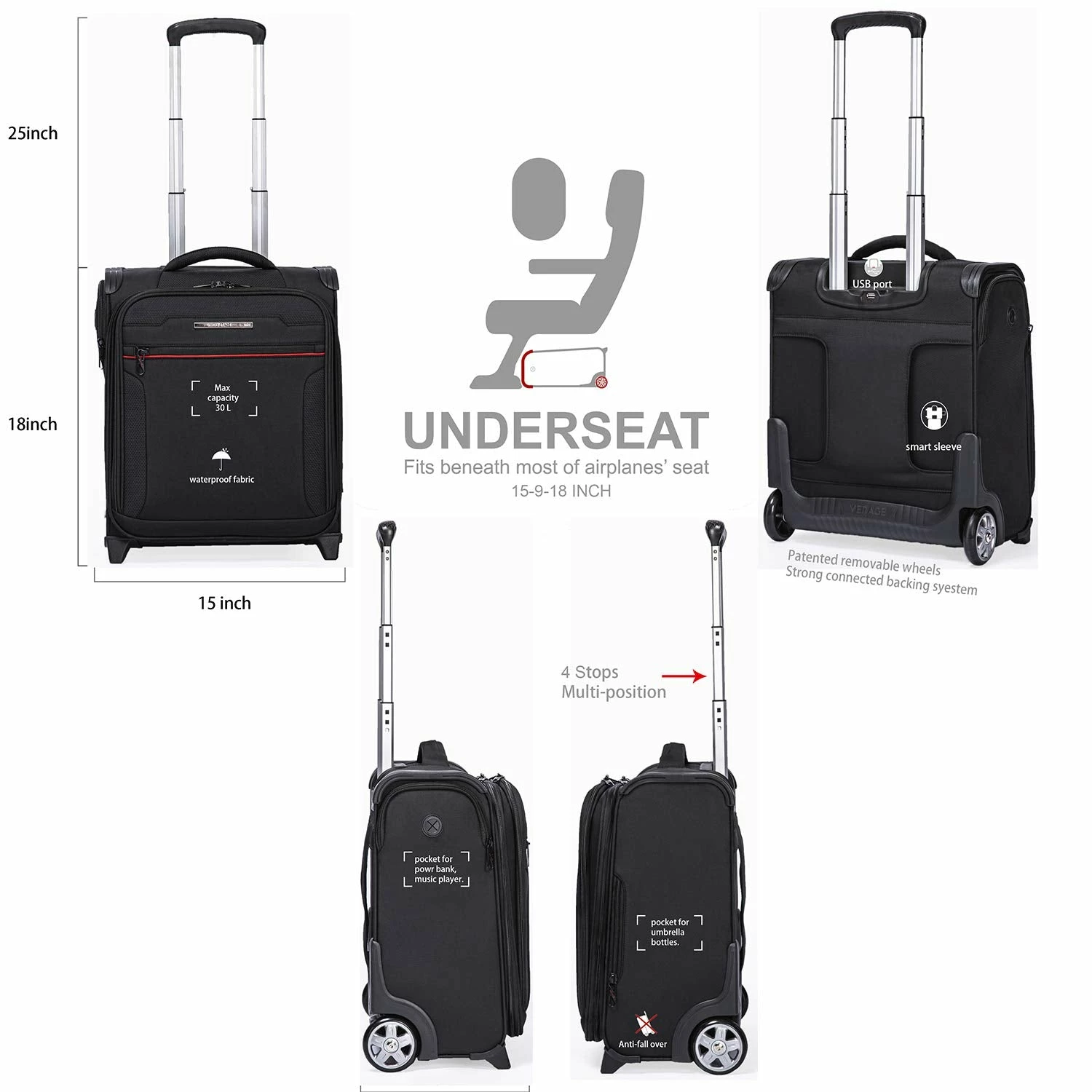 - ✈[DURABLE]:VERAGE rolling wheeled underseat softside carry on luggage is designed for organization, mobility and convenience; Polyester fabric exceptionally resistant to abrasion, punctures,and tears, and water-resistant;High tensile strength safty zipper provide lasting durability ,anti-burst and anti-theft double protection.
